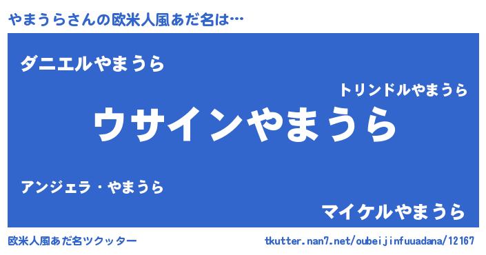 | 男性向けラノベタイトル風あだ名 | 『やまうらの嫁は女の子じゃないと思った?』 |