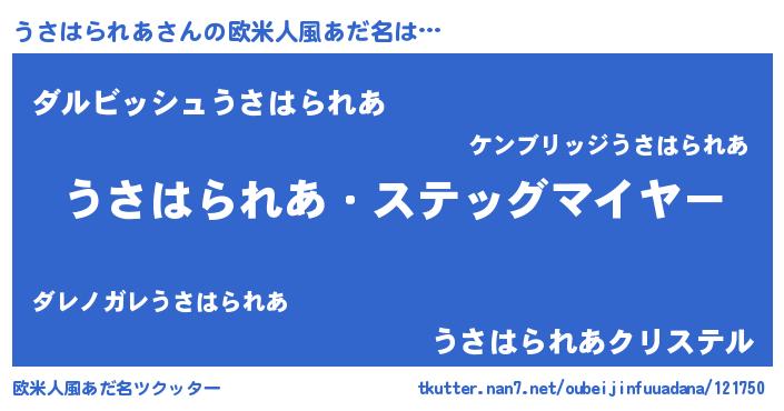 | 意味不明あだ名 | 『永久保存うさはられあ』 |