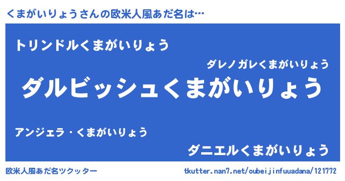| 男性向けラノベタイトル風あだ名 | 『くまがいりょうという概念が存在しない退屈な世界 』 |