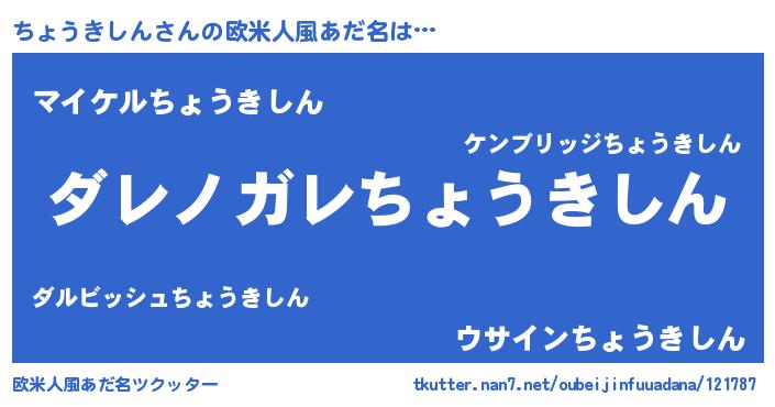 | 意味不明あだ名 | 『住所不定無職ちょうきしん(9歳)』 |