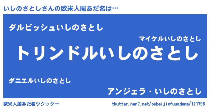 | 男性向けラノベタイトル風あだ名 | 『いしのさとし~年齢イコール彼女いない歴の魔法使い~』 |