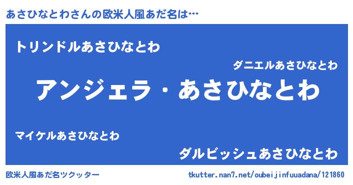 | ヘコむあだ名 | 『あさひなとわ(笑)』『あさっふぃ~』 |