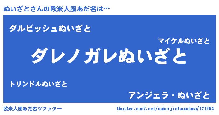 | 意味不明あだ名 | 『住所不定無職ぬいざと(56歳)』 |