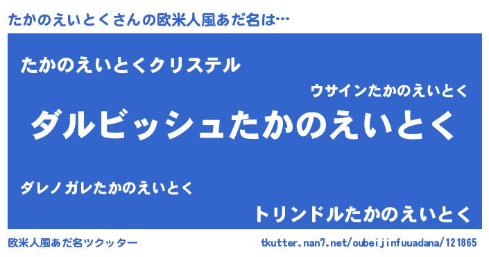 | ヘコむあだ名 | 『たかのえいとく(遠い目)』『酢こんぶ』 |