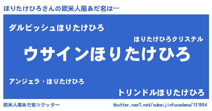 | 男性向けラノベタイトル風あだ名 | 『ほりたけひろの嫁は女の子じゃないと思った?』 |