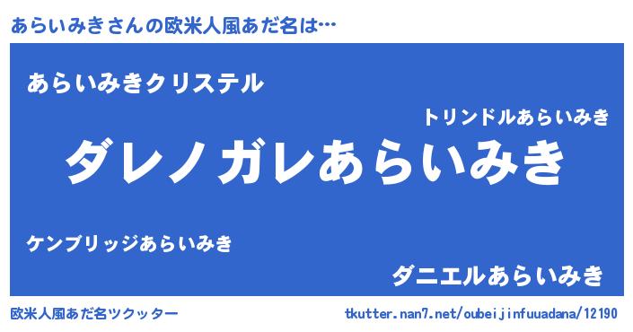 | 意味不明あだ名 | 『住所不定無職あらいみき(39歳)』 |