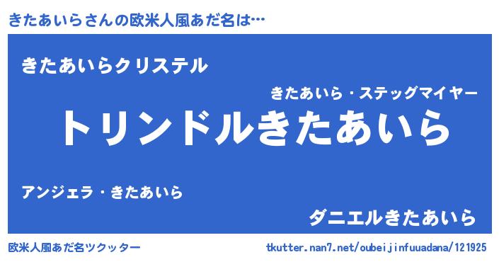 | 男性向けラノベタイトル風あだ名 | 『転生したらきたあいらだった件』 |
