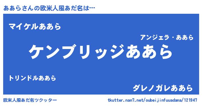 | 意味不明あだ名 | 『自称ああら』『ペロリンああら』 |