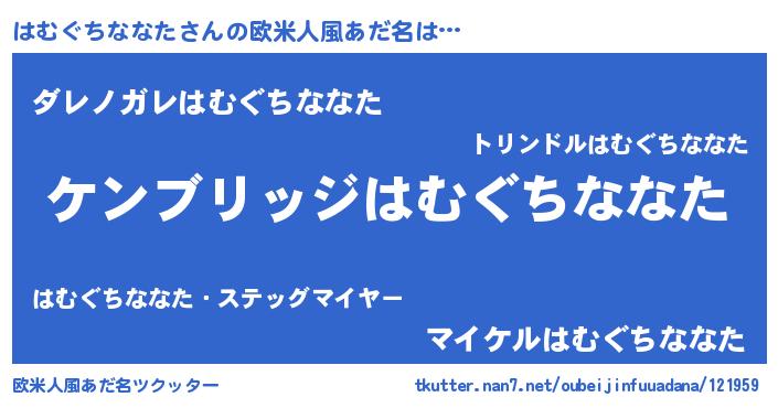 | 胡散臭い通販商品みたいなあだ名 | 『ガンによく効く高麗人参…その名も「はむぐちななた」』 |