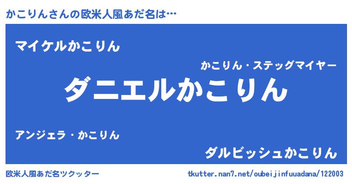 | 男性向けラノベタイトル風あだ名 | 『おまえをオタクにしてやるから、俺をかこりんにしてくれ! 』 |