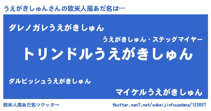 | 男性向けラノベタイトル風あだ名 | 『ウエガキシュンスレイヤー』 |