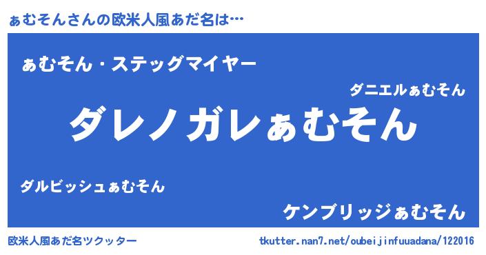 | ヘコむあだ名 | 『ぁむそん(震え声)』『ぁむお』 |