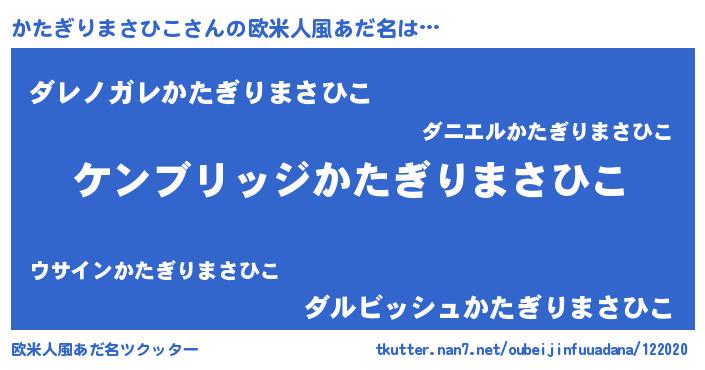 | 意味不明あだ名 | 『自称かたぎりまさひこ』 |