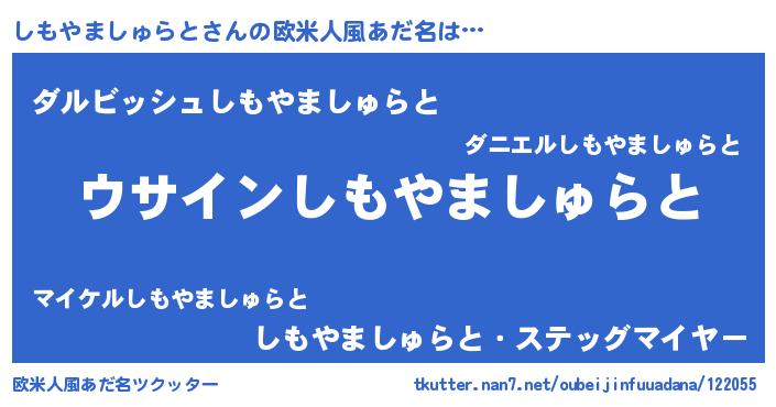 | 男性向けラノベタイトル風あだ名 | 『ダンジョンにしもやましゅらとを求めるのは間違っているだろうか』 |
