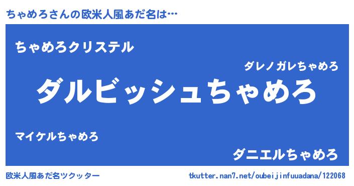 | 女子向けラノベタイトル風あだ名 | 『異世界で失敗しない100のちゃめろ』 |