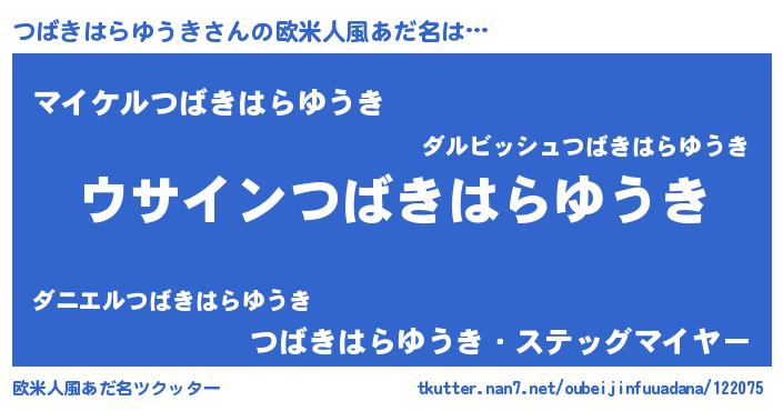 | 男性向けラノベタイトル風あだ名 | 『つばきはらゆうきの嫁は女の子じゃないと思った?』 |