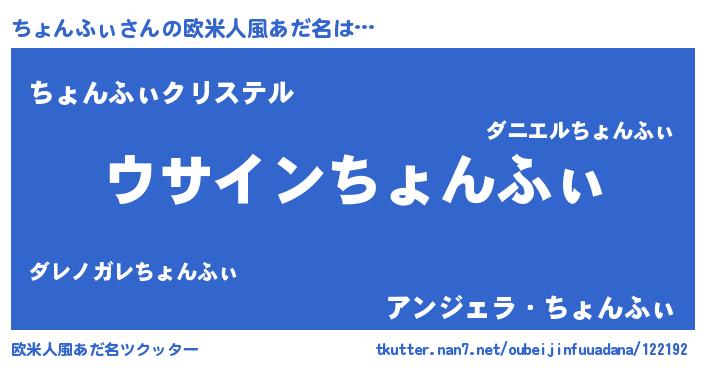| 男性向けラノベタイトル風あだ名 | 『ちょんふぃの嫁は女の子じゃないと思った?』 |