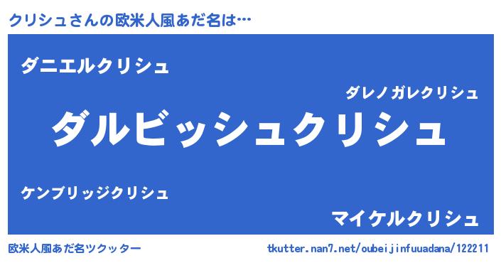 | 意味不明あだ名 | 『永久保存クリシュ』『ペロリンクリシュ』 |