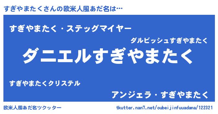| 女子向けラノベタイトル風あだ名 | 『すぎやまたく恋絵巻』 |