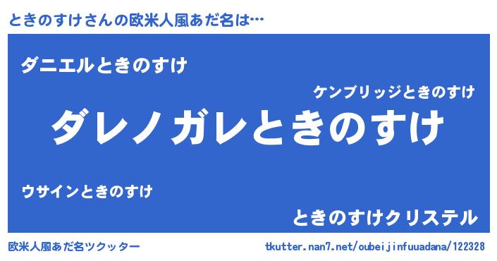 | ヘコむあだ名 | 『豆乳』『ときお』『ときのすけ(笑)』 |