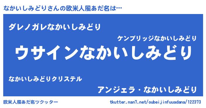 | 女子向けラノベタイトル風あだ名 | 『なかいしみどりの卵を拾いまして』 |