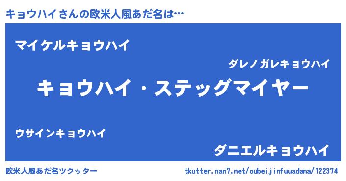 | 男性向けラノベタイトル風あだ名 | 『うちのキョウハイが世界を掌握している!』 |