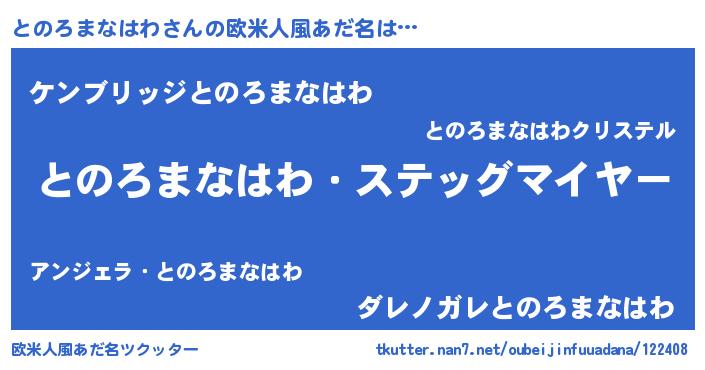 | 恥ずかしいあだ名 | 『トノロマナハワデラックス』『とのちん』 |