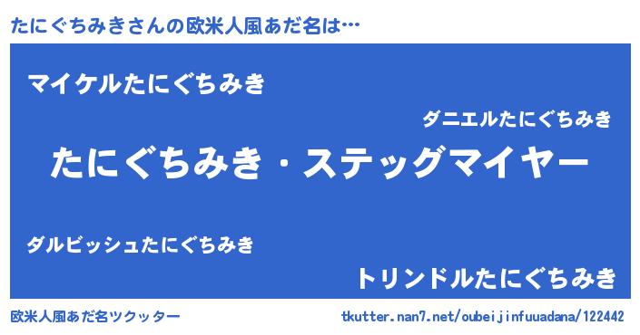 | 男性向けラノベタイトル風あだ名 | 『うちのたにぐちみきが世界を掌握している!』 |