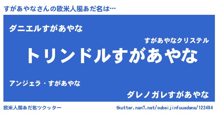 | 男性向けラノベタイトル風あだ名 | 『すがあやな~年齢イコール彼女いない歴の魔法使い~』 |