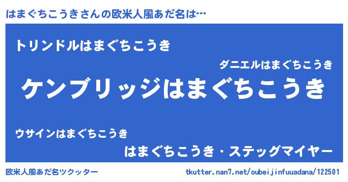 | 意味不明あだ名 | 『自称はまぐちこうき』 |