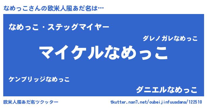 | 男性向けラノベタイトル風あだ名 | 『なめっこの憂鬱』『魔弾の王となめっこ』 |