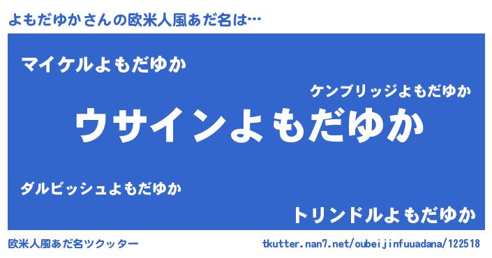 | 女子向けラノベタイトル風あだ名 | 『よもだゆかの卵を拾いまして』 |