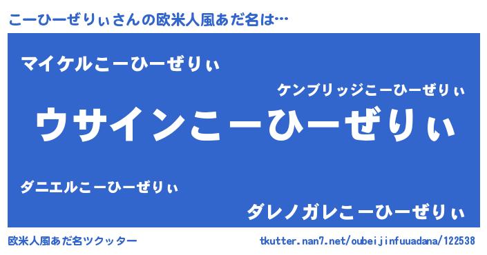 | 男性向けラノベタイトル風あだ名 | 『こーひーぜりぃの嫁は女の子じゃないと思った?』 |