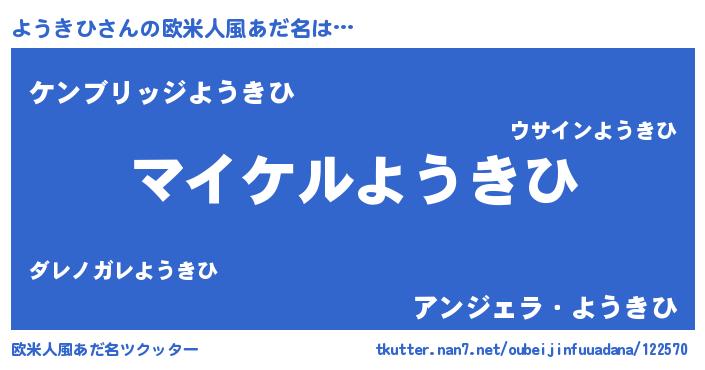 | 男性向けラノベタイトル風あだ名 | 『ようきひの憂鬱』『魔弾の王とようきひ』 |