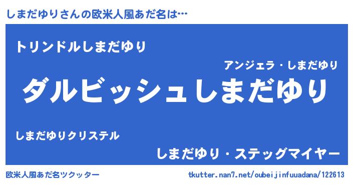| 男性向けラノベタイトル風あだ名 | 『しまだゆりという概念が存在しない退屈な世界 』 |