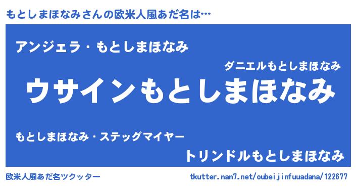 | 男性向けラノベタイトル風あだ名 | 『もとしまほなみの嫁は女の子じゃないと思った?』 |