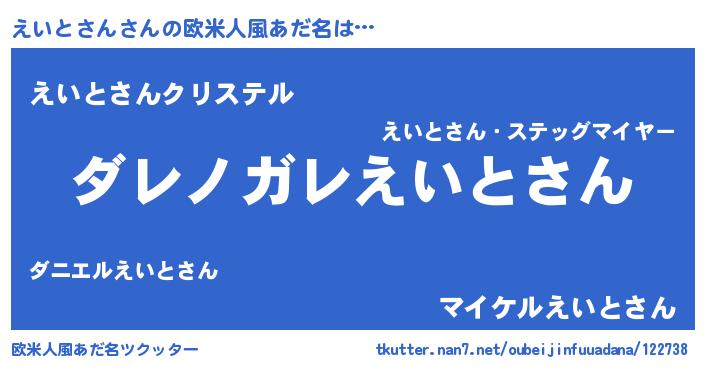 | 男性向けラノベタイトル風あだ名 | 『この素晴らしい世界にえいとさんを!』 |