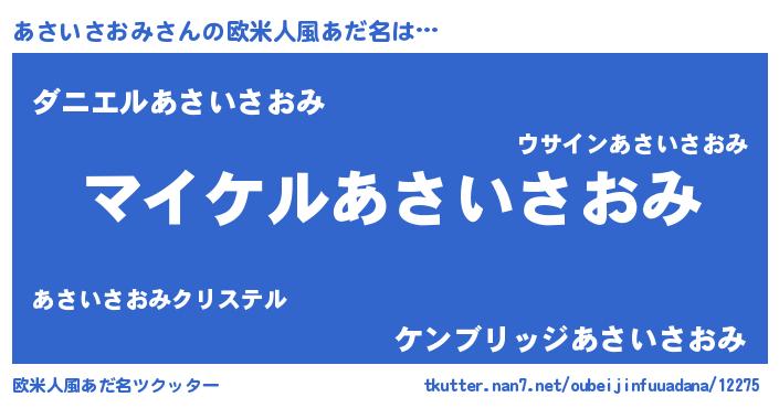 | 胡散臭い通販商品みたいなあだ名 | 『モテモテ間違いなし霊験あらたかなお札…その名も「あさいさおみ」』 |