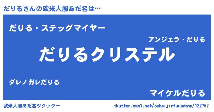 | 男性向けラノベタイトル風あだ名 | 『やはりだりるの青春ラブコメはまちがっている 』 |