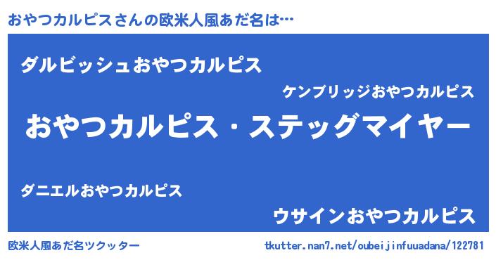 | 男性向けラノベタイトル風あだ名 | 『うちのおやつカルピスが世界を掌握している!』 |