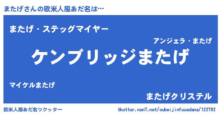| 意味不明あだ名 | 『自称またげ』『またげフォーエバー』 |
