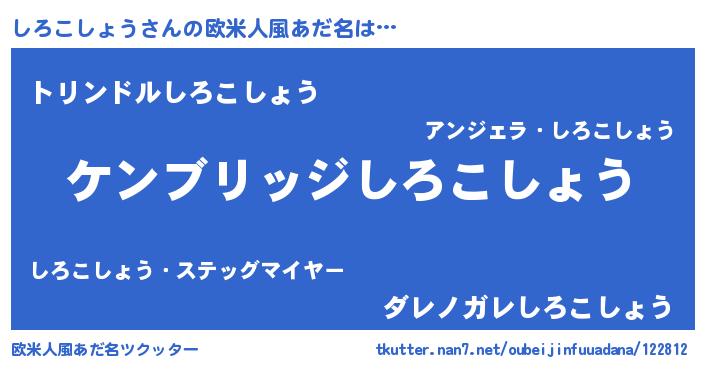 | 男性向けラノベタイトル風あだ名 | 『Re:しろこしょうから始める異世界生活』 |