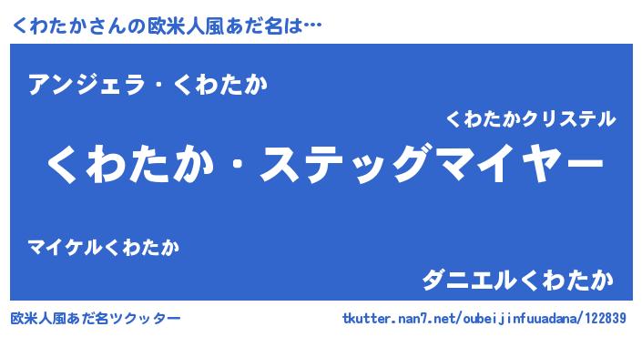 | 男性向けラノベタイトル風あだ名 | 『うちのくわたかが世界を掌握している!』 |