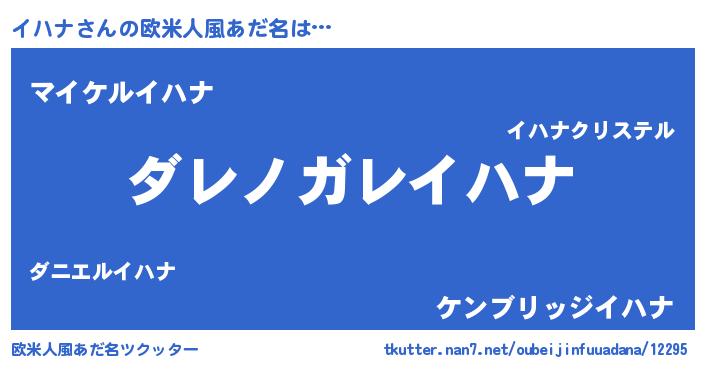 | 男性向けラノベタイトル風あだ名 | 『この素晴らしい世界にイハナを!』 |