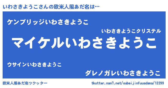 | 男性向けラノベタイトル風あだ名 | 『イワサキヨウコアートオンライン』 |