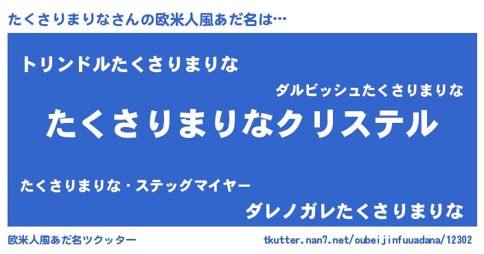 | 女子向けラノベタイトル風あだ名 | 『たくさりまりなの雑貨屋さん』 |
