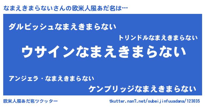 | 胡散臭い通販商品みたいなあだ名 | 『信頼と実績のサプリメント…その名も「なまえきまらない」』 |