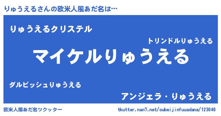 | 男性向けラノベタイトル風あだ名 | 『りゅうえるの憂鬱』 |