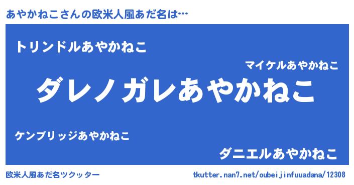 | ヒーロー風カッコイイあだ名 | 『仮面アヤダー』『天空の使者あやかねこ』 |