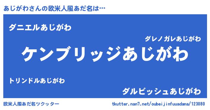 | 男性向けラノベタイトル風あだ名 | 『Re:あじがわから始める異世界生活』 |